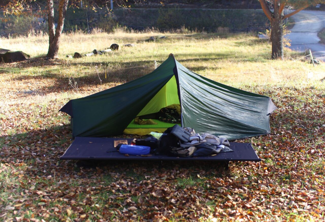 最大幅80cmありますが、足元に向けてすぼまっていくため、広めのマットやワイドシュラフとは相性が悪いです。荷物の持ち込みも最低限にする前提なら快適。